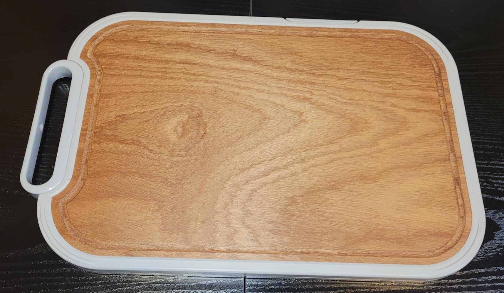 • Premium Cutting Surfaces, Thoughtful Details: The titanium side features a textured, anti-slip finish to improve stability and reduce knife slippage for safer cutting. Its seamless, pore-free surface resists trapping debris and lingering odors. The sapele side is crafted from well-seasoned, high-density timber (cutting board wood) that resists splintering, lasts longer and helps protect knife edges, making it a practical non toxic cutting board option.